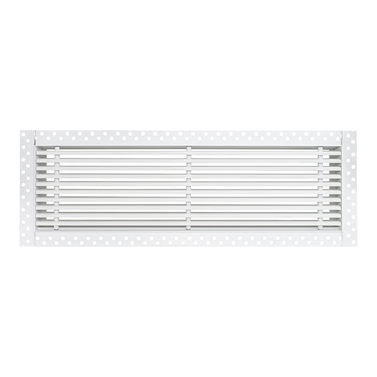 Данная решетка подходит для монтажа на любую поверхность под финишную отделку. Рамка и экран изготовлены из алюминия, опора экрана - из оцинкованной стали. Рама оснащена «полкой» 1,9 мм и рифлеными краями для большей адгезии финишного материала – шпатлевки, цемента. Решетка имеет съемную центральную часть с фиксированным углом наклона ламелей 15°. Она крепится к корпусу прочными металлическими тросиками, легко снимается для очистки и удобного обслуживания.