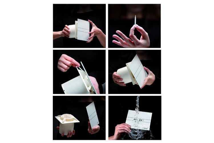 Дизайнерской изюминкой является фронтальная панель, выполненная из стекла, что позволяет использовать его в любых помещениях. Он - вентилятор для ванной комнаты и вентилятор для туалета. Вентилятор Cata E-120 G гармонично вписывается под любую плитку.