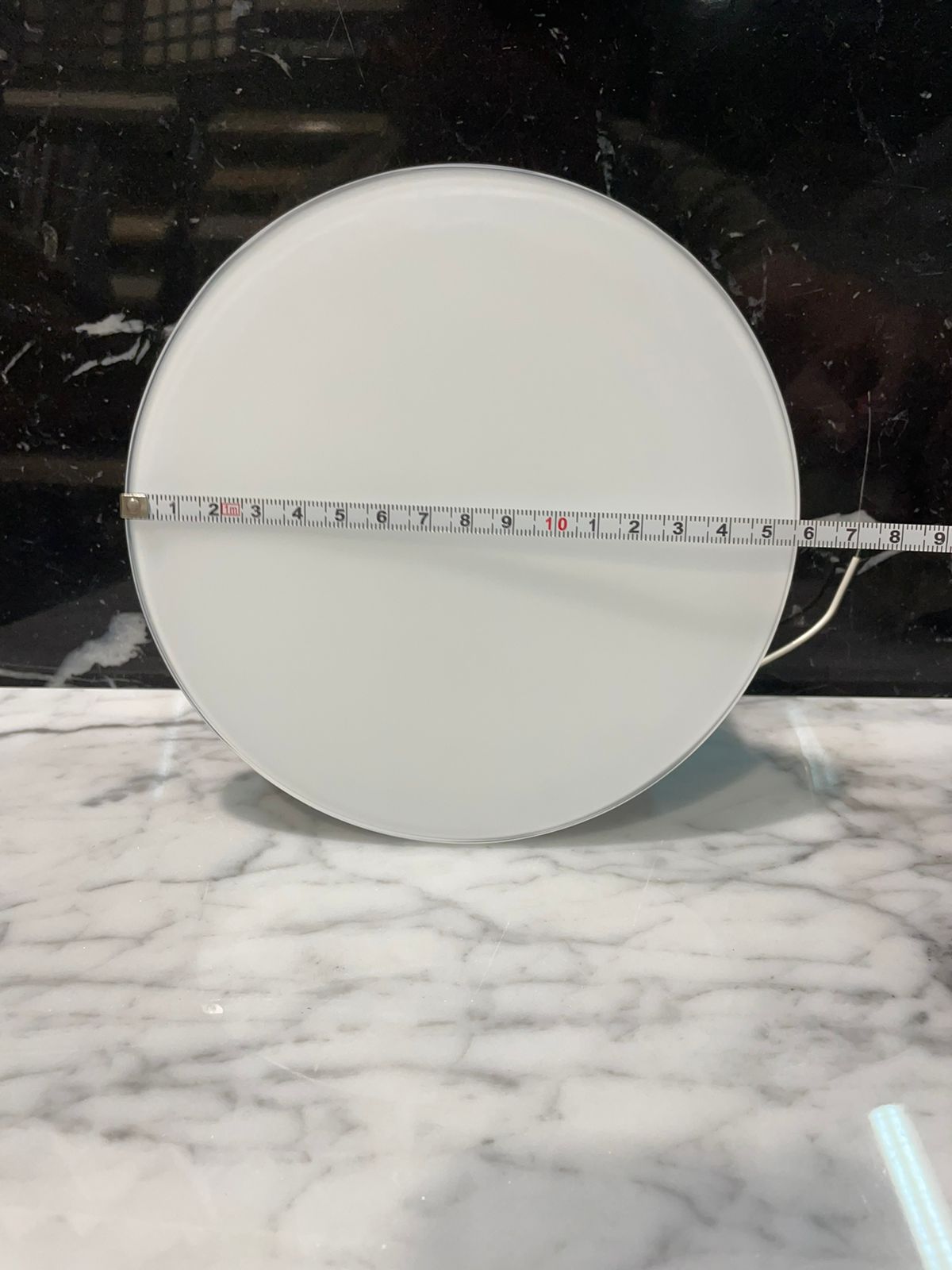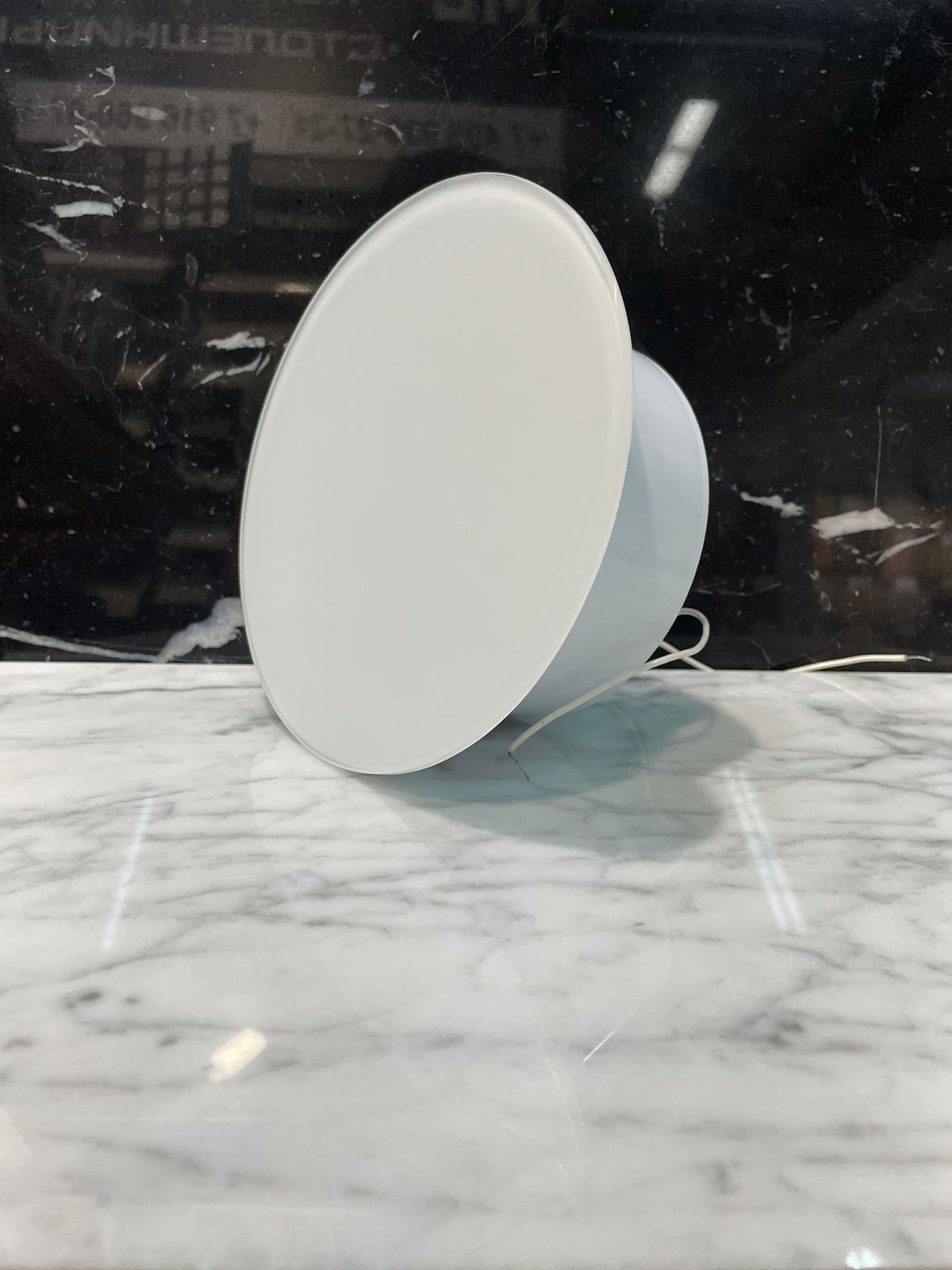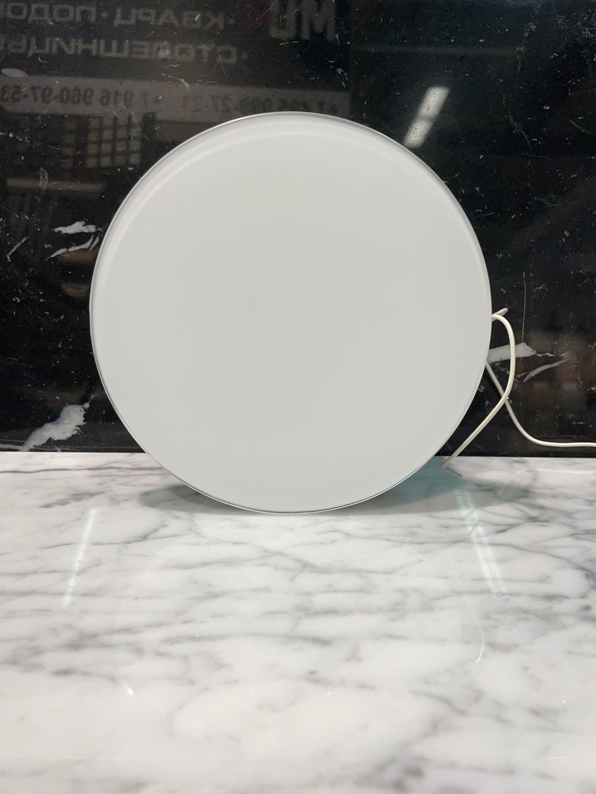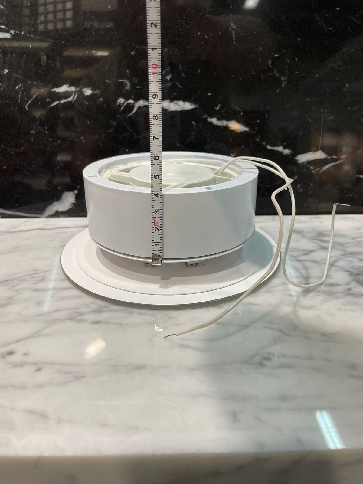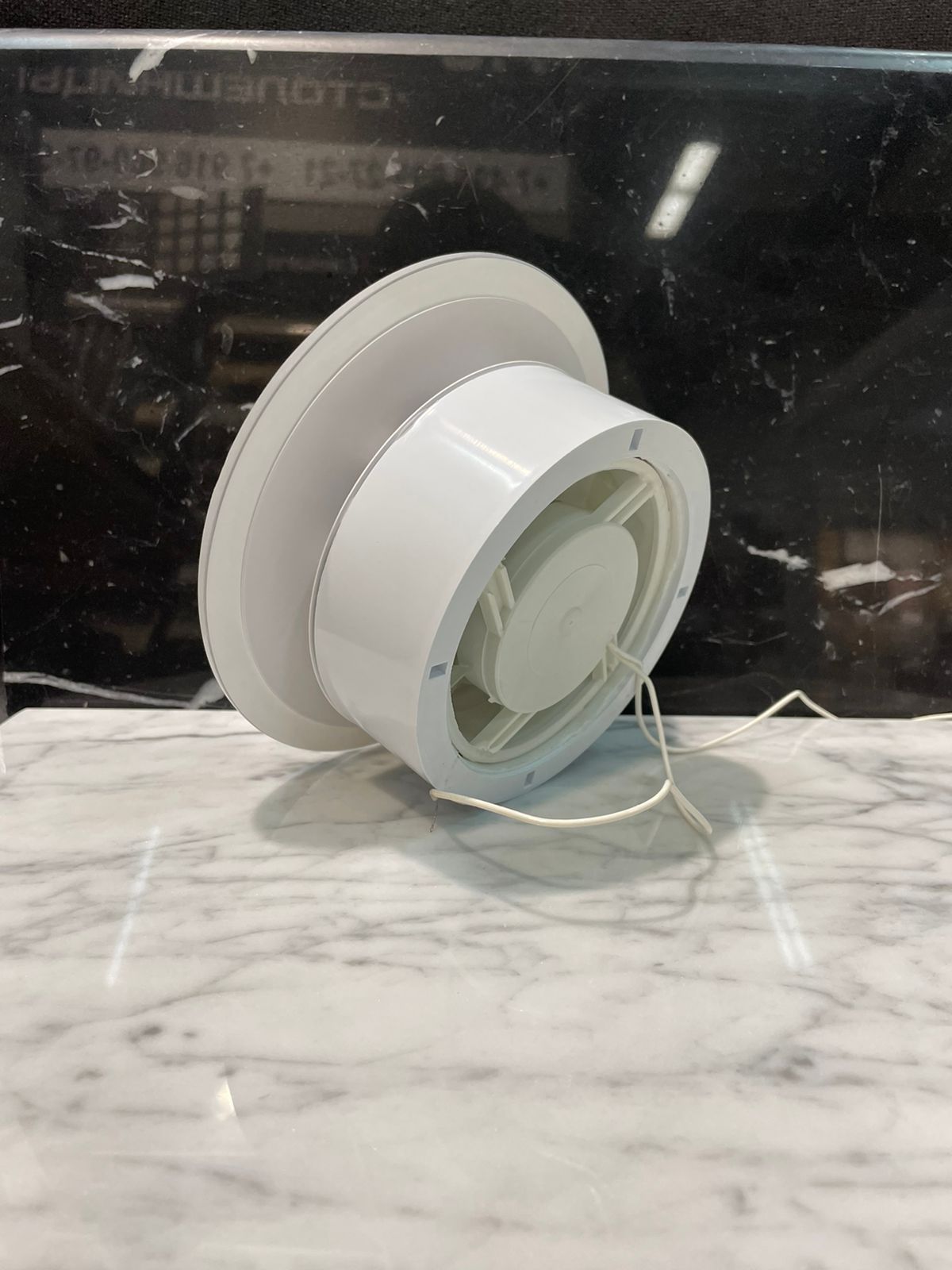 - Вентилятор из белого глянцевого стекла накладного типа.